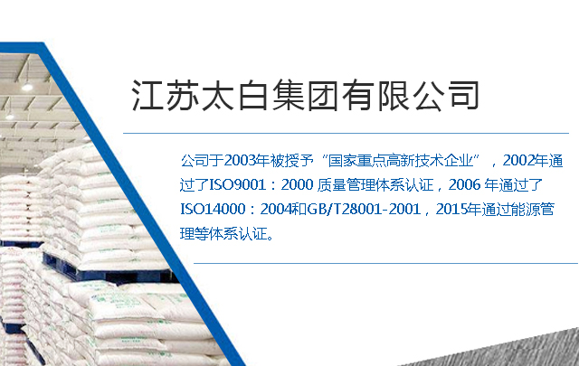 江蘇太白集團有限公司是中國鈦白粉行業的骨干生產企業之一,擁有年產8萬噸高檔金紅石型鈦白粉、10萬噸聚合硫酸鐵以及25萬噸硫酸的生產能力。